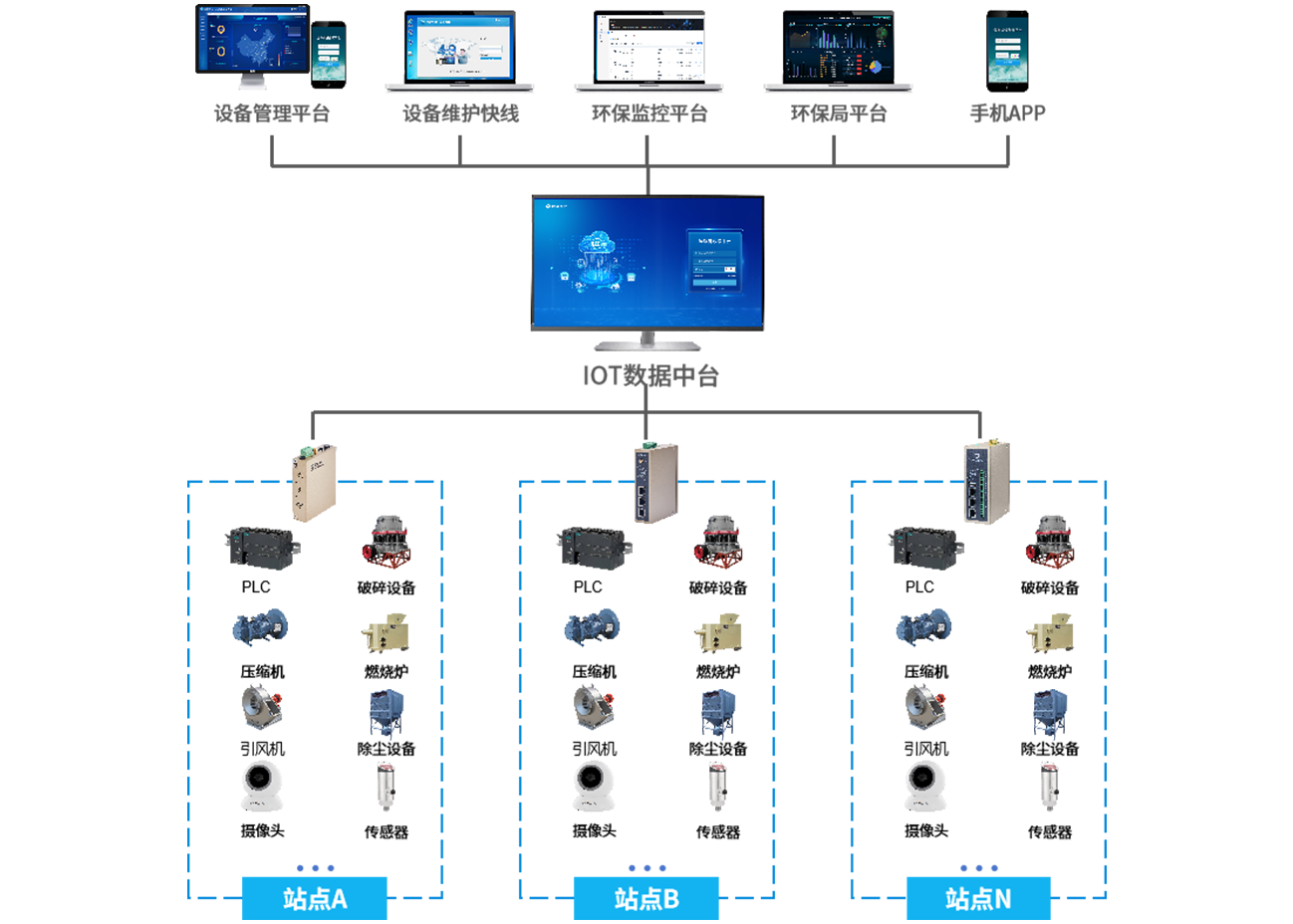 在固废垃圾处理场的各个关键位置(如垃圾存储区、处理设备旁等)安装传感器和监测设备,顺利获得long8龙8国际的工业智能网关采集垃圾处理设备(如焚烧炉、破碎机等)的运行数据(如运行状态、温度、压力等)、垃圾存量数据以及环境监测数据(如空气质量、噪声等)。将采集到的数据传输至固废垃圾处理远程监控平台,平台对数据进行实时分析和展示。当垃圾存量达到预警值或设备出现异常时及时发出预警,支持远程运维和调度操作,同时对垃圾处理效果进行评估。