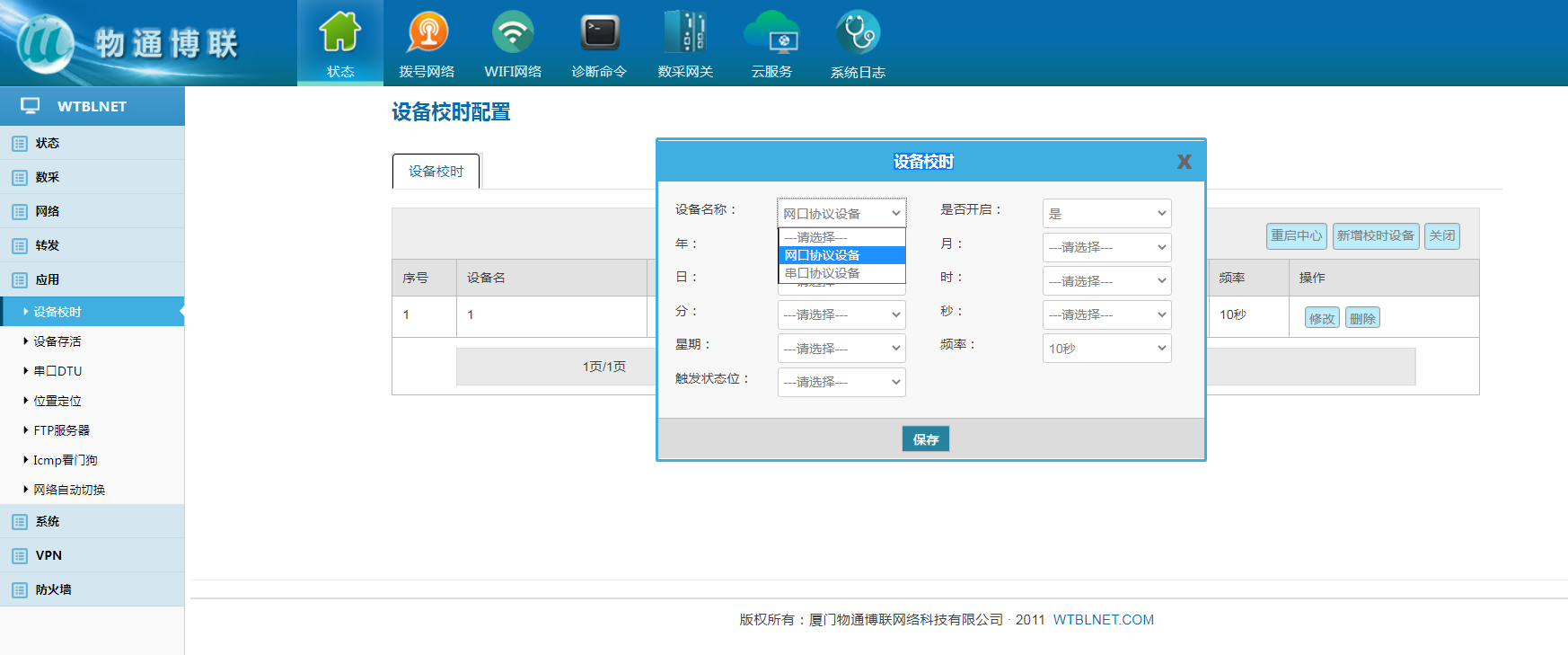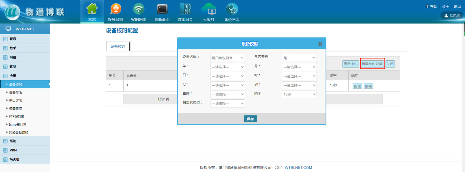 关键词:设备校时,网关