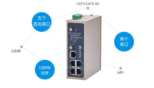 硬件参数:单核CPU,128MB运存,五个百兆网口、两个232/485串口