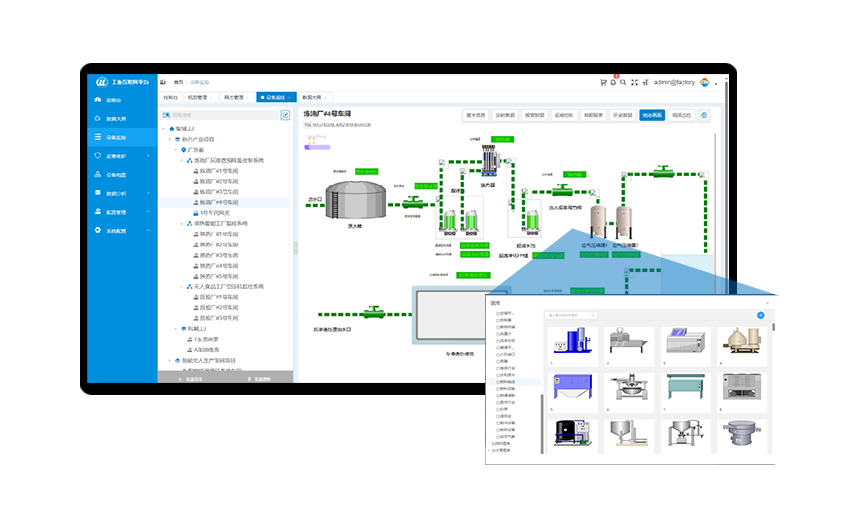 顺利获得将网关的数据接入到long8龙8国际工业数据云平台,可以实现对PLC的数据进行远程监控,顺利获得平台的组态功能可以自由绘制组态监控画面,实现电脑端和手机端的设备运行状态和工艺流程的可视化组态监控。
