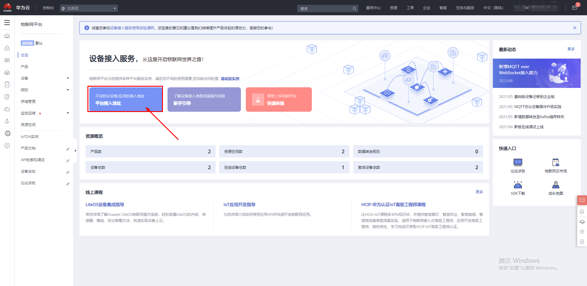华为云地址:http://console.huaweicloud.com/iotdm/?region=cn-north-4#/dm-portal/home