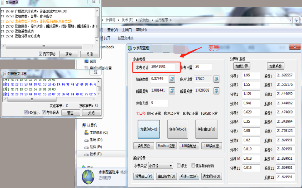 ④加载后会出现水表地址,如下图: