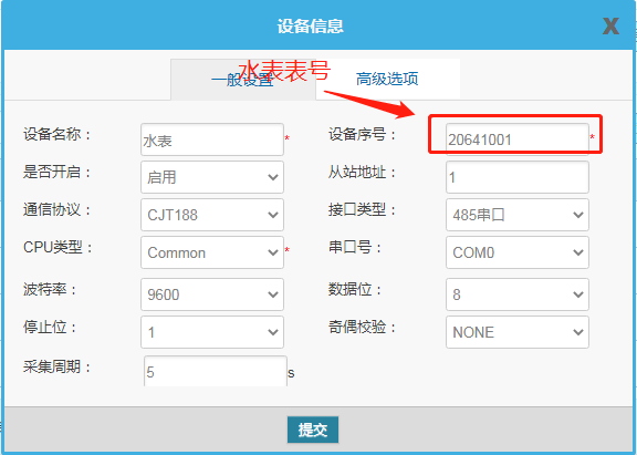 注:水表表号一定要填写,其他的根据水表的参数进行选择。
