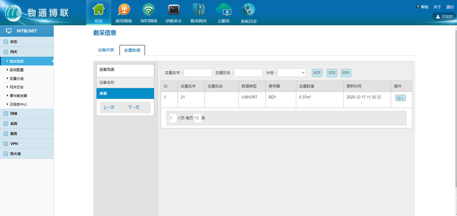 网关---数采配置---添加设备---添加变量---重启采集程序并生效新的配置。