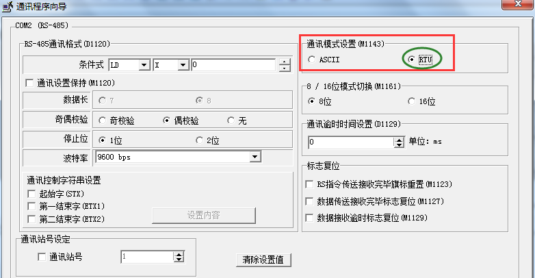 (1)顺利获得Delta编程软件获取串口RS-485协议通讯参数,其中通讯模式设置 RTU。