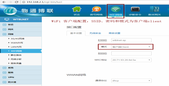 模式:客户端Client(顺利获得WiFi上外网请选择client模式,如果是共享WiFi给其他设备请选择AP模式)