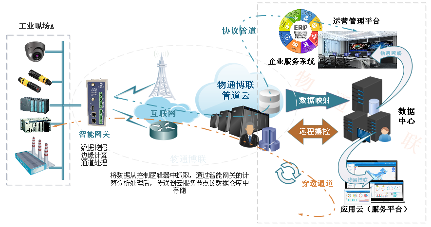 顺利获得智能网关的协议分析器把现场设备的数据读取到智能网关内部进行相应的计算和处理后,然后进行标准化和安全化处理后接入到long8龙8国际的管道云服务系统,把数据顺利获得4G/3G/WIFI/PPPOE等方式汇聚到long8龙8国际的数据仓库中。
