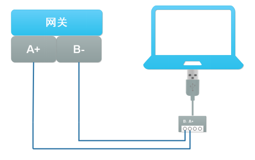 WD140工业数采终端快速配置实现模拟量I/O数据采集 1 接线 1、准备一条USB转RS485串口线,USB连接电脑,RS485串口线的A+和B-分别连接到WD140的A+以及B-,如下图: