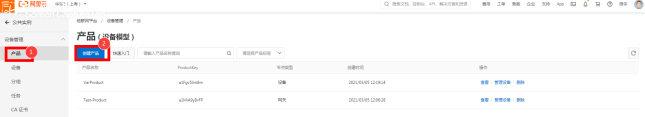 3 创建项目 产品概述:阿里云的产品相当于long8龙8国际的机型,首选建立网关的基本信息,基本信息包含产品和设备。 步骤详见以下内容: 点击公共实例进入设备管理界面