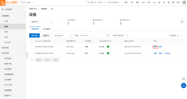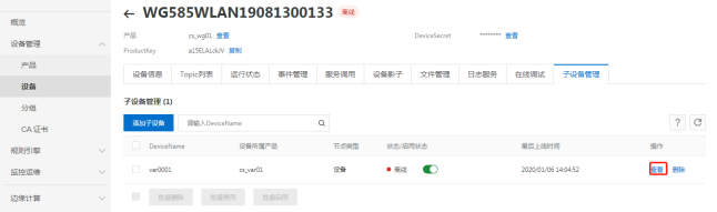 设备管理中查看节点类型为网关的设备