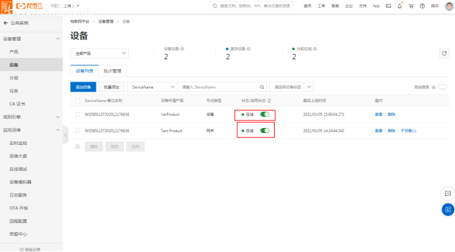完成后查看设备是否激活成功